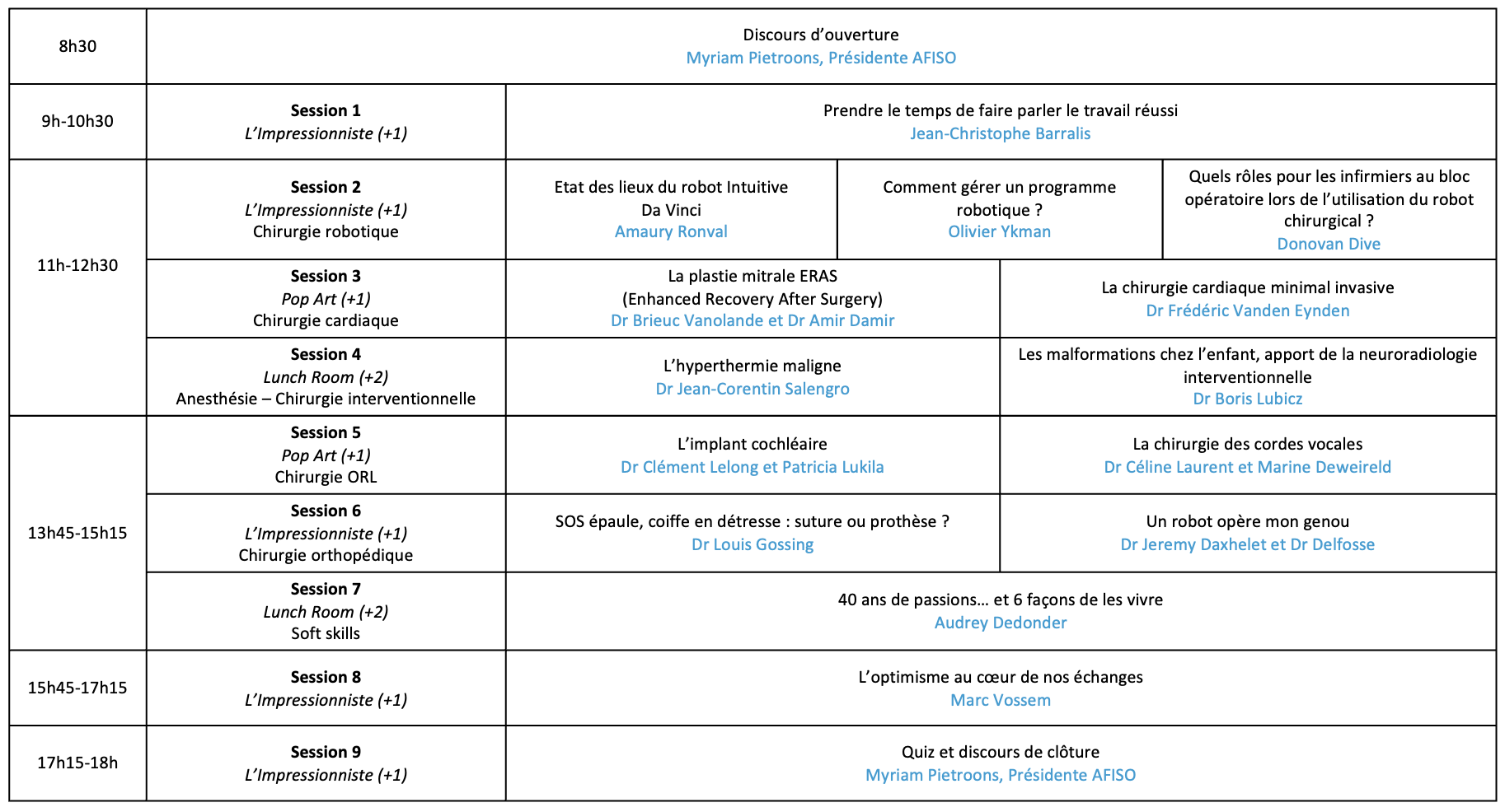 * Les sessions durent une heure et demie, sont reconnues par l’EORNA comme sessions de formation permanente et valent chacune 1,5 CH (crédit d’heure). Un certificat reprenant les différents sujets vous sera envoyé après le congrès.